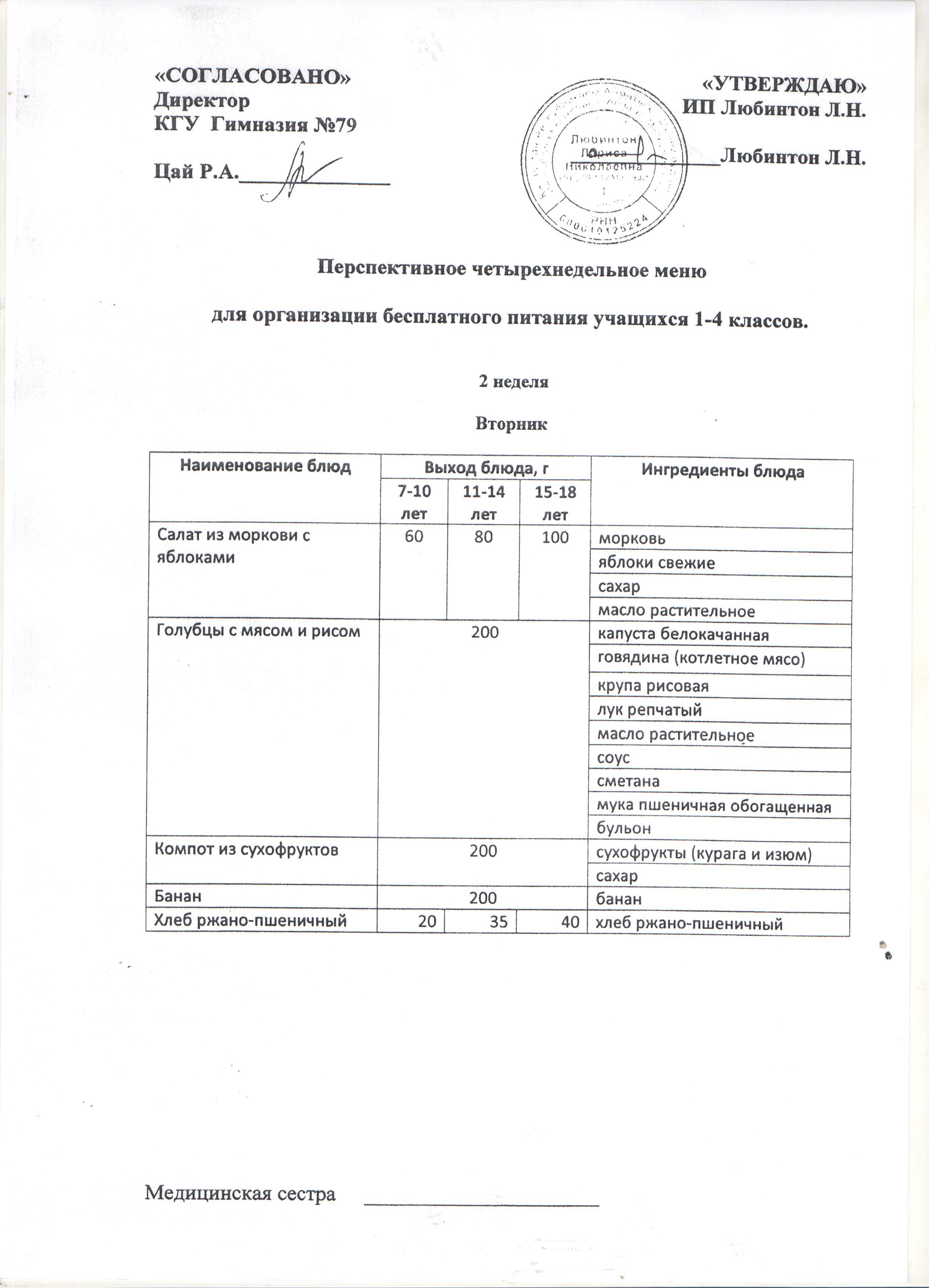 09 қыркүйек 2019 0 1 2 3 4 5 Меню блюд для организации бесплатного питания отдельных категорий 2 неделя
