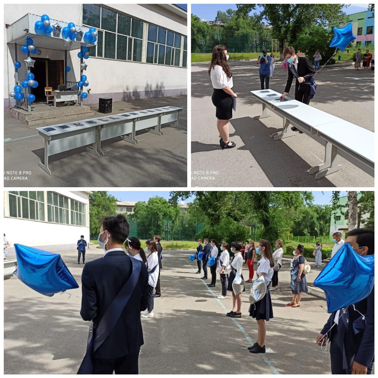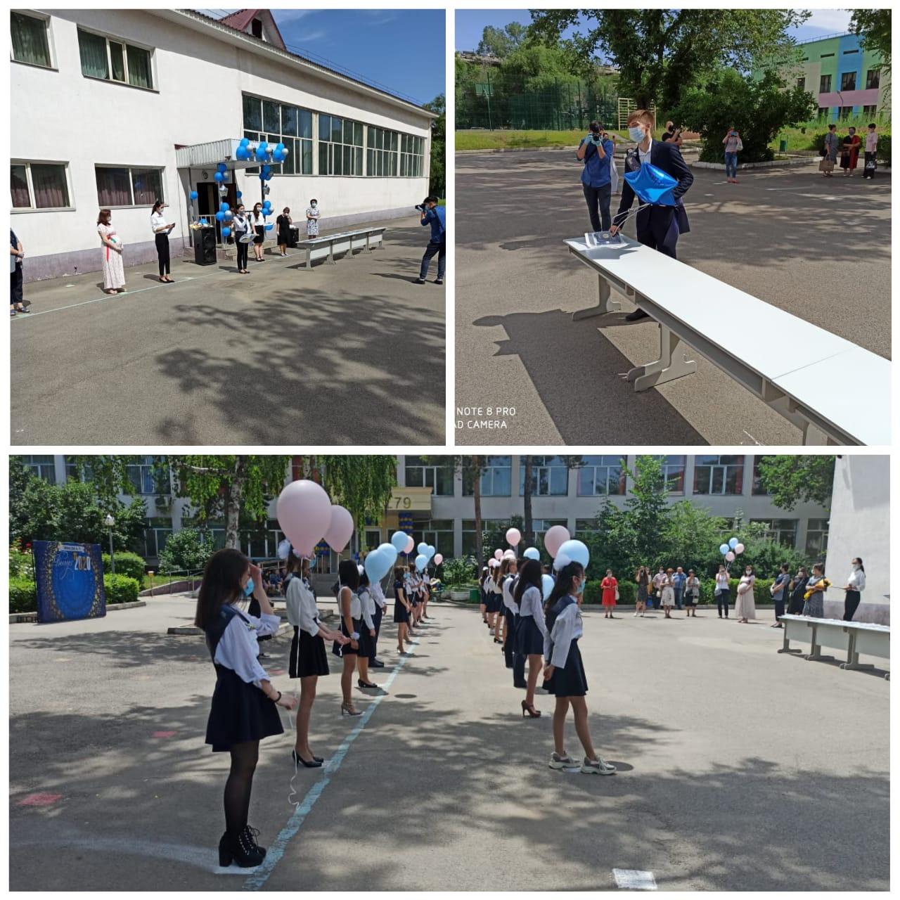 Сегодня 03.06.2020 г. состоялась торжественная линейка, посвященная вручению аттестатов выпускникам 2020 года! Для выпускников прозвенел последний школьный звонок. В этом учебном году по КГУ «Гимназия № 79» выпустились 38 учащихся, среди которых 2 ученицы - обладательницы «Алтын белгі»: Биекенова Асель Талгатовна, Мустафина Карина Жумакаировна, 1 ученица- обладательница аттестата особого образца: Наубетияр Милана Тимуровна. Расположение учащихся было произведено по указанным правилам социального дистанцинирования, вручение аттестатов- бесконтактное.