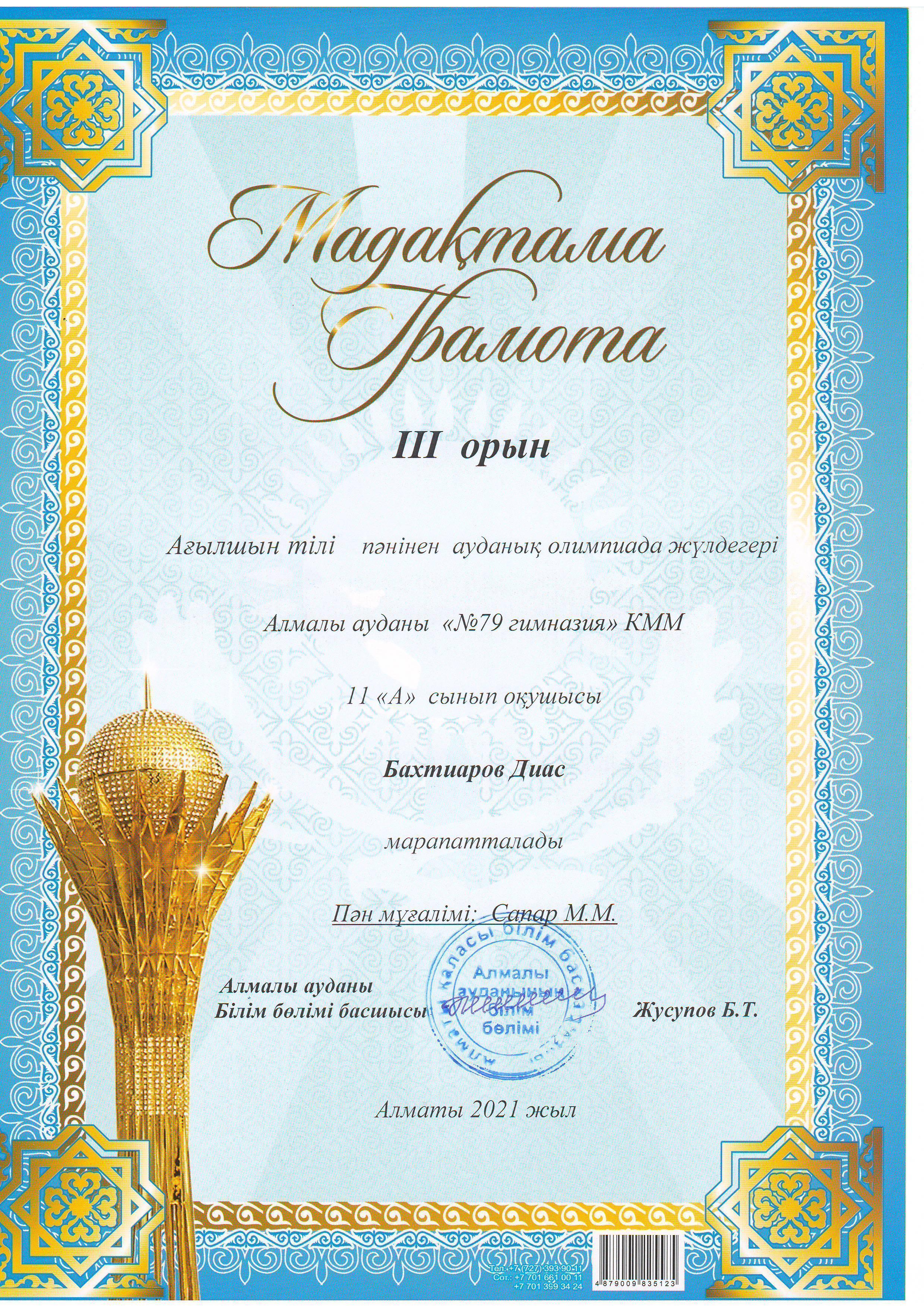 КГУ "Гимназия №79" Управления образования города Алматы