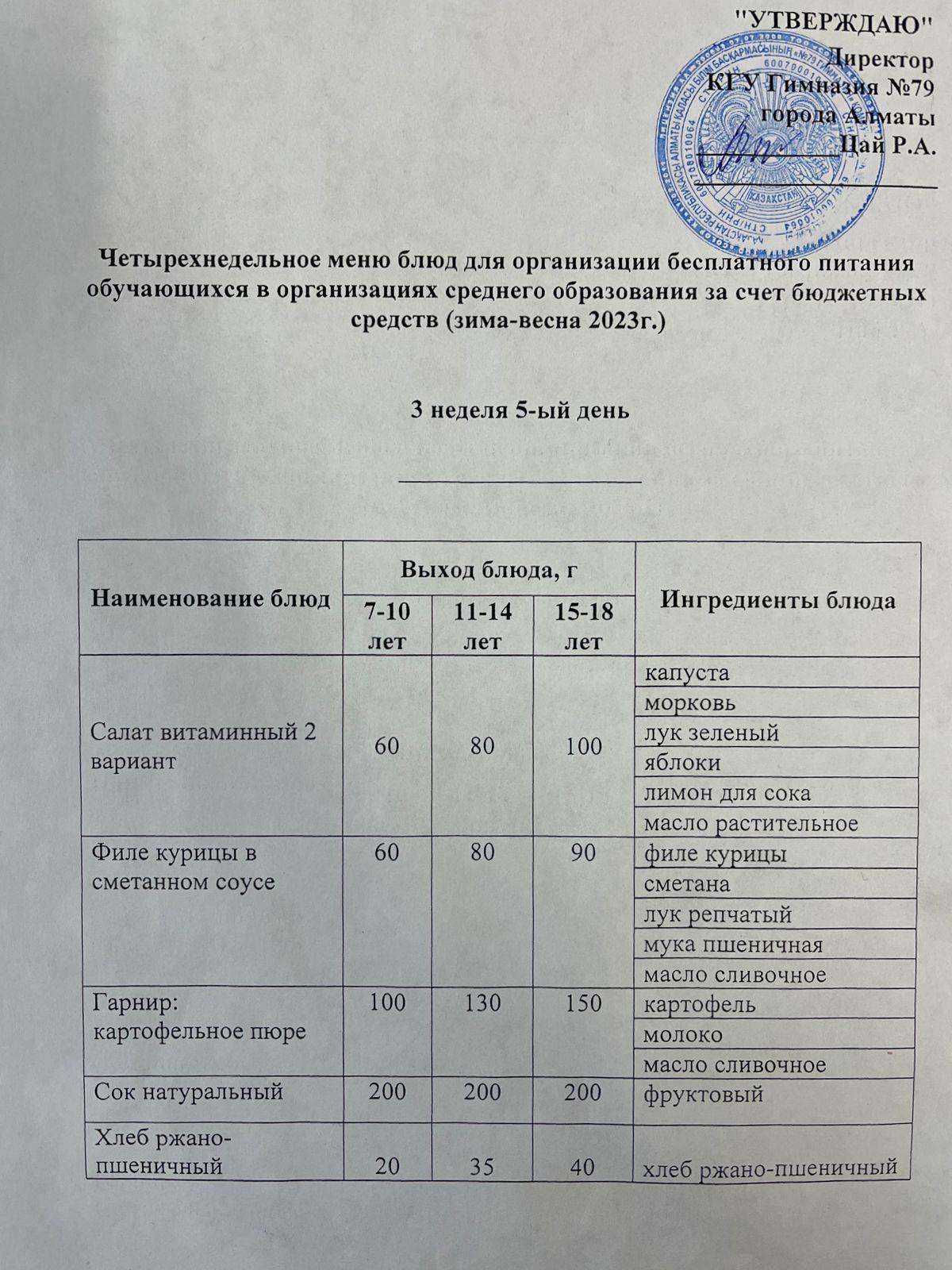 27 қаңтар 2023 0 1 2 3 4 5 Тегін тамақтануды ұйымдастыруға арналған тағамдар мәзірі (қыс-көктем) / Меню блюд для организации бесплатного питания (зима-весна)