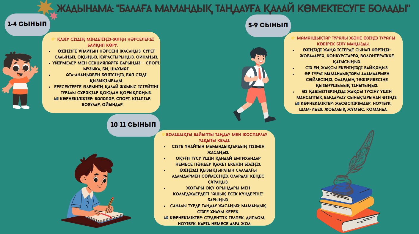 » Жадынама: "Балаға мамандық таңдауға қалай көмектесуге болады"