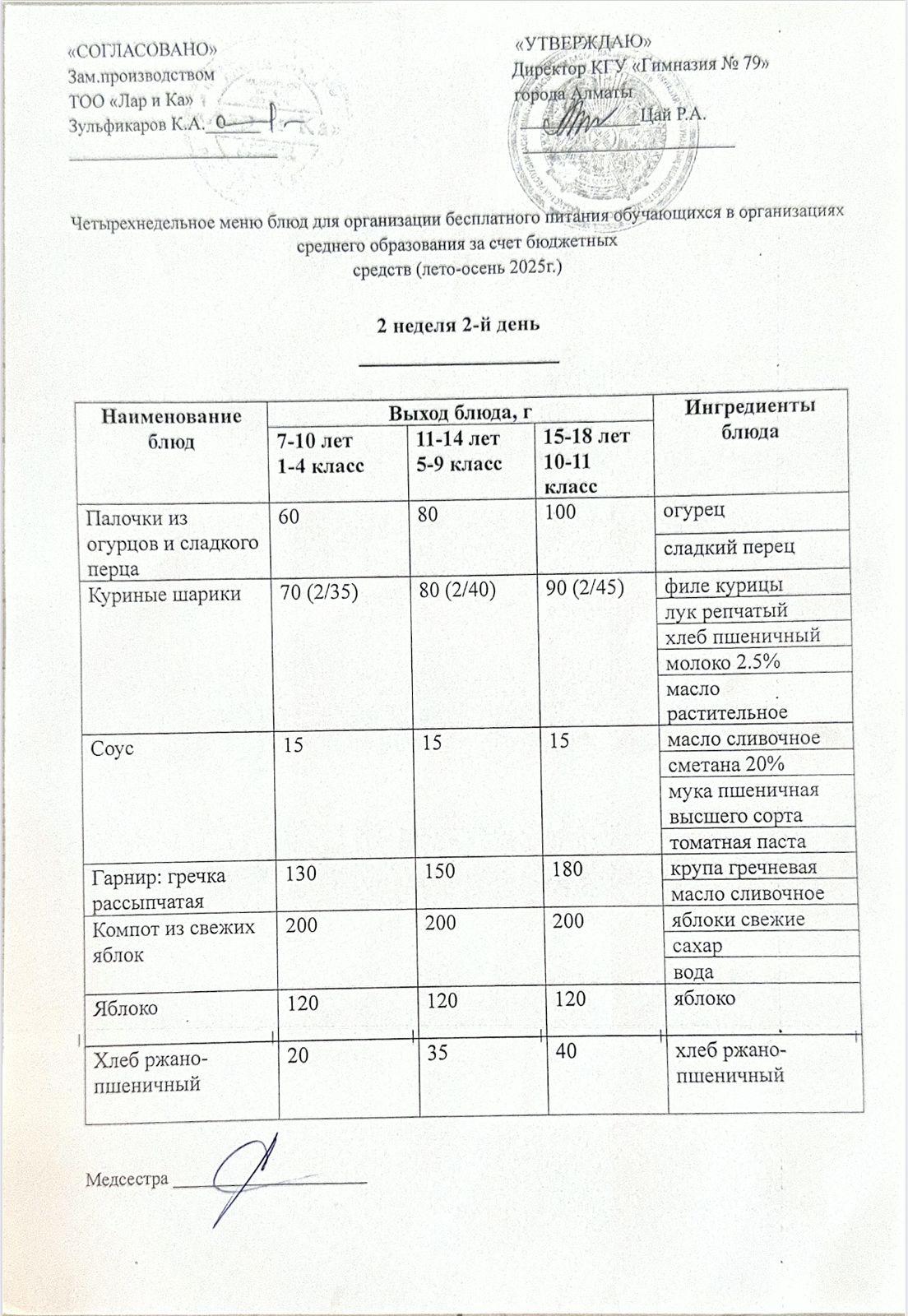 » Тегін тамақтануды ұйымдастыруға арналған тағамдар мәзірі (жаз-күз)