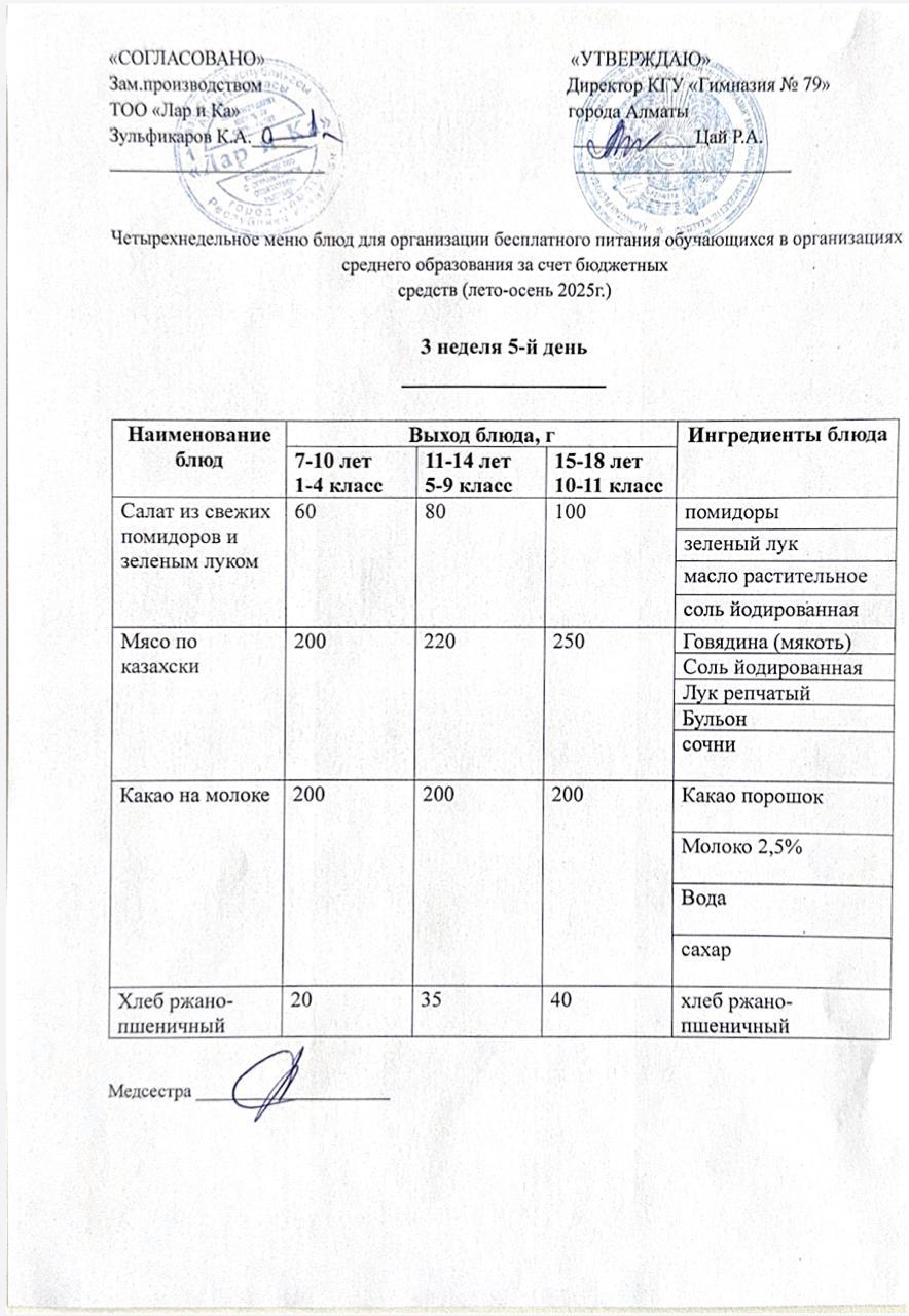 » Тегін тамақтануды ұйымдастыруға арналған тағамдар мәзірі (жаз-күз)