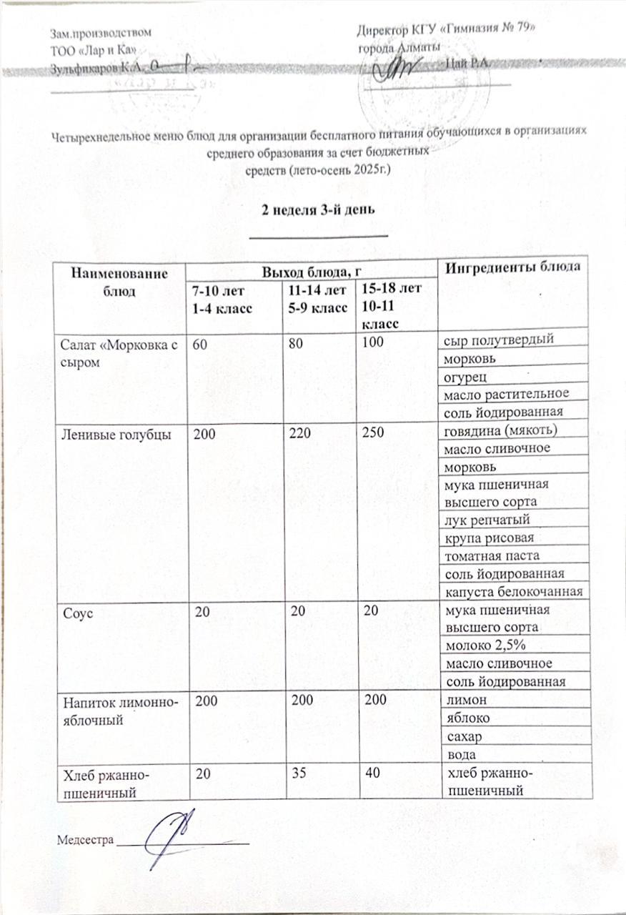 » Тегін тамақтануды ұйымдастыруға арналған тағамдар мәзірі (жаз-күз)