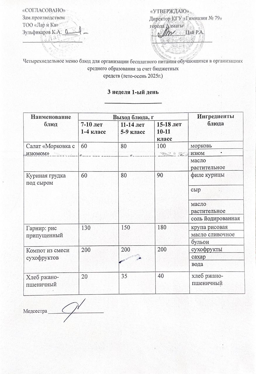 » Тегін тамақтануды ұйымдастыруға арналған тағамдар мәзірі (жаз-күз)