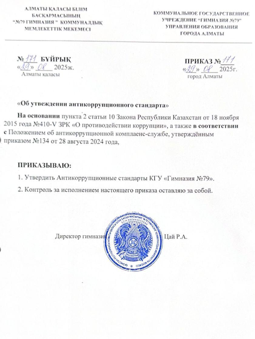 Сыбайлас жемқорлыққа қарсы стандартты бекіту туралы бұйрық