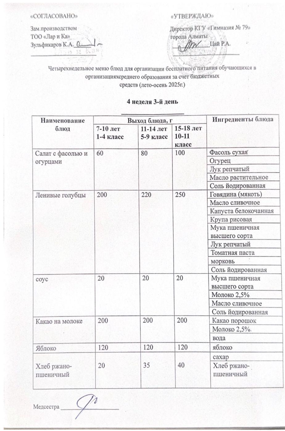 » Тегін тамақтануды ұйымдастыруға арналған тағамдар мәзірі (жаз-күз)