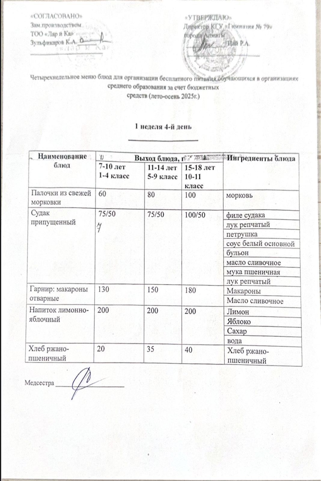 » Тегін тамақтануды ұйымдастыруға арналған тағамдар мәзірі (жаз-күз)