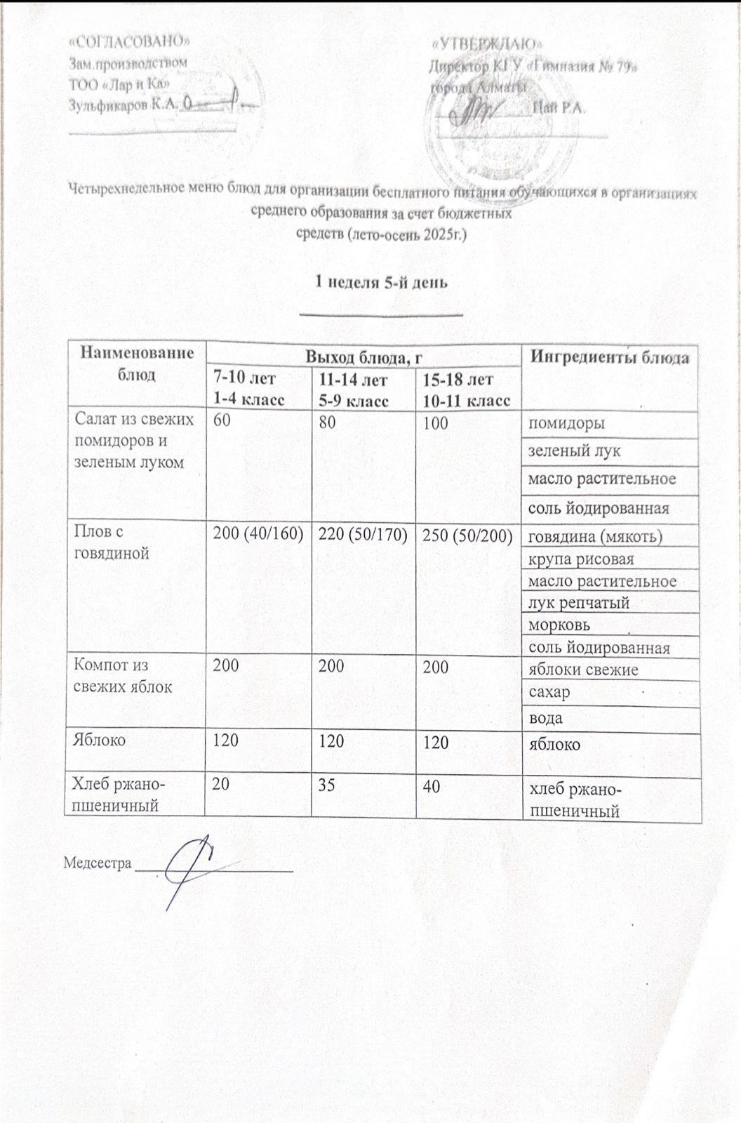 » Тегін тамақтануды ұйымдастыруға арналған тағамдар мәзірі (жаз-күз)