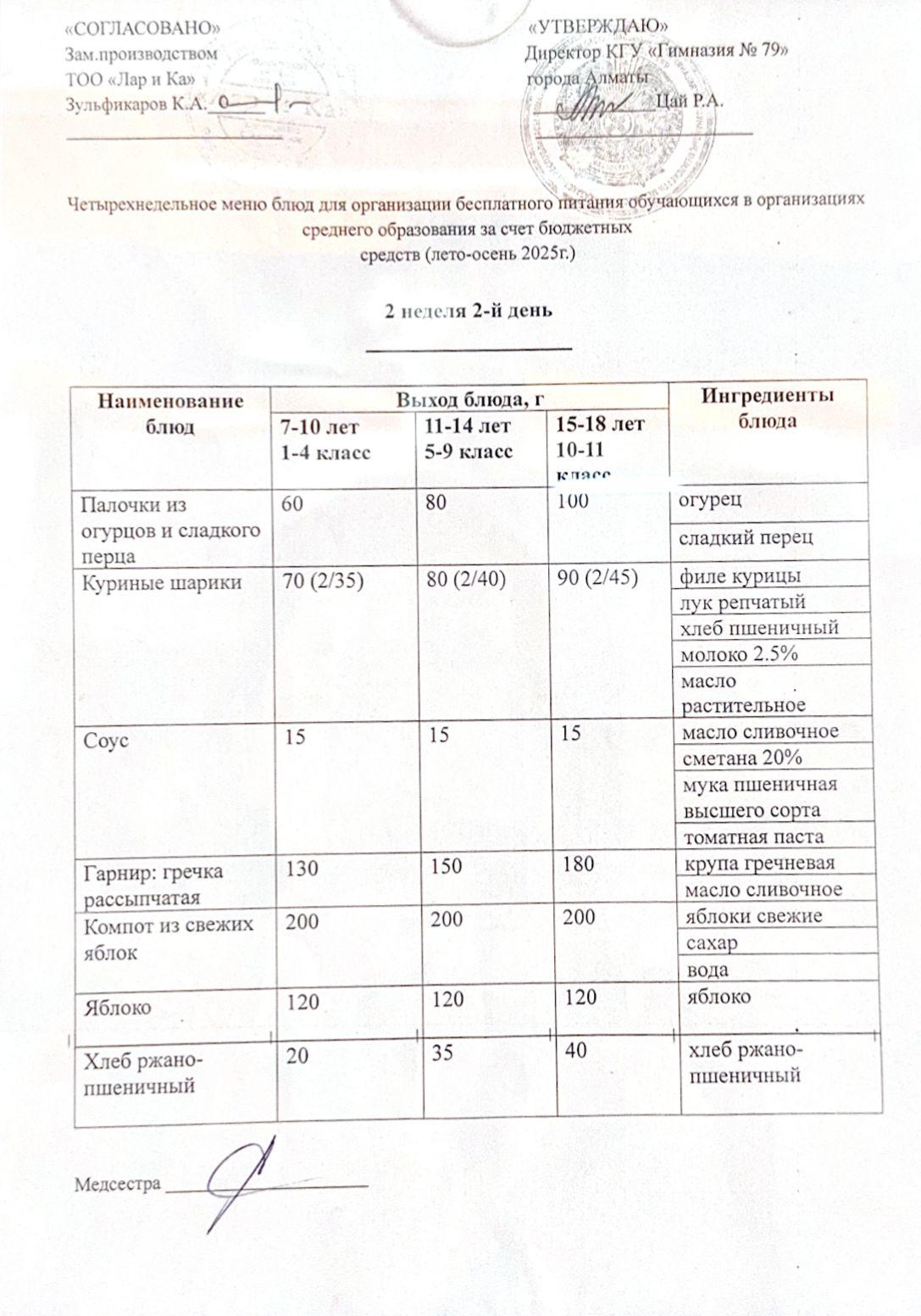 » Тегін тамақтануды ұйымдастыруға арналған тағамдар мәзірі (жаз-күз)