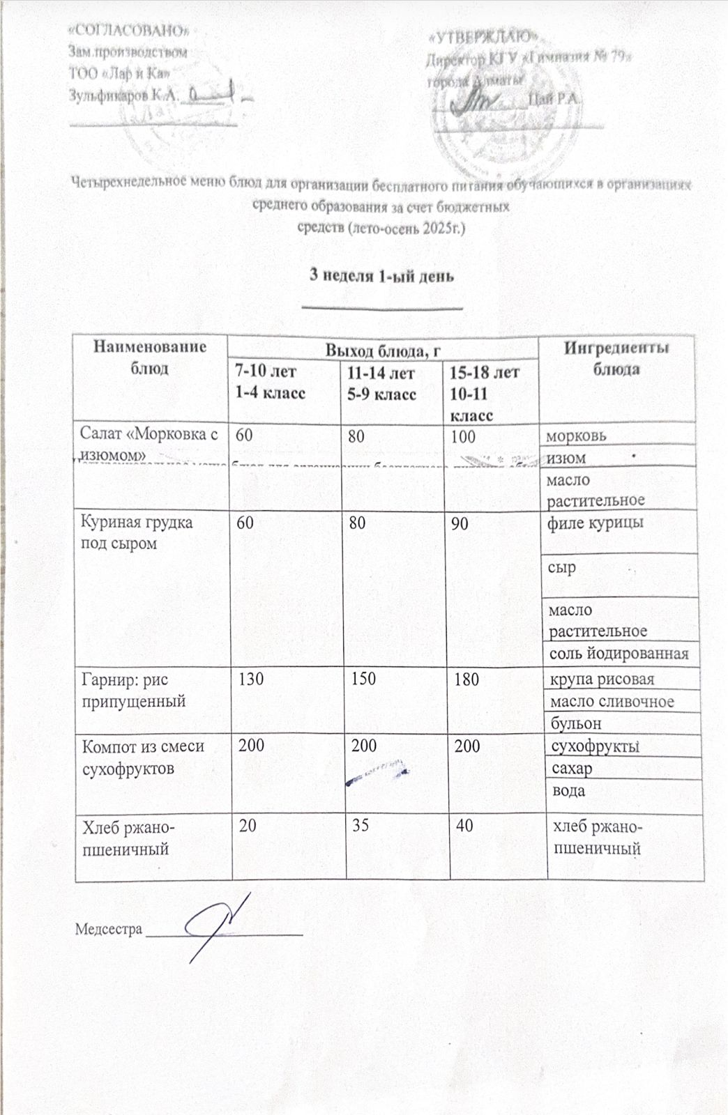 » Тегін тамақтануды ұйымдастыруға арналған тағамдар мәзірі (жаз-күз)