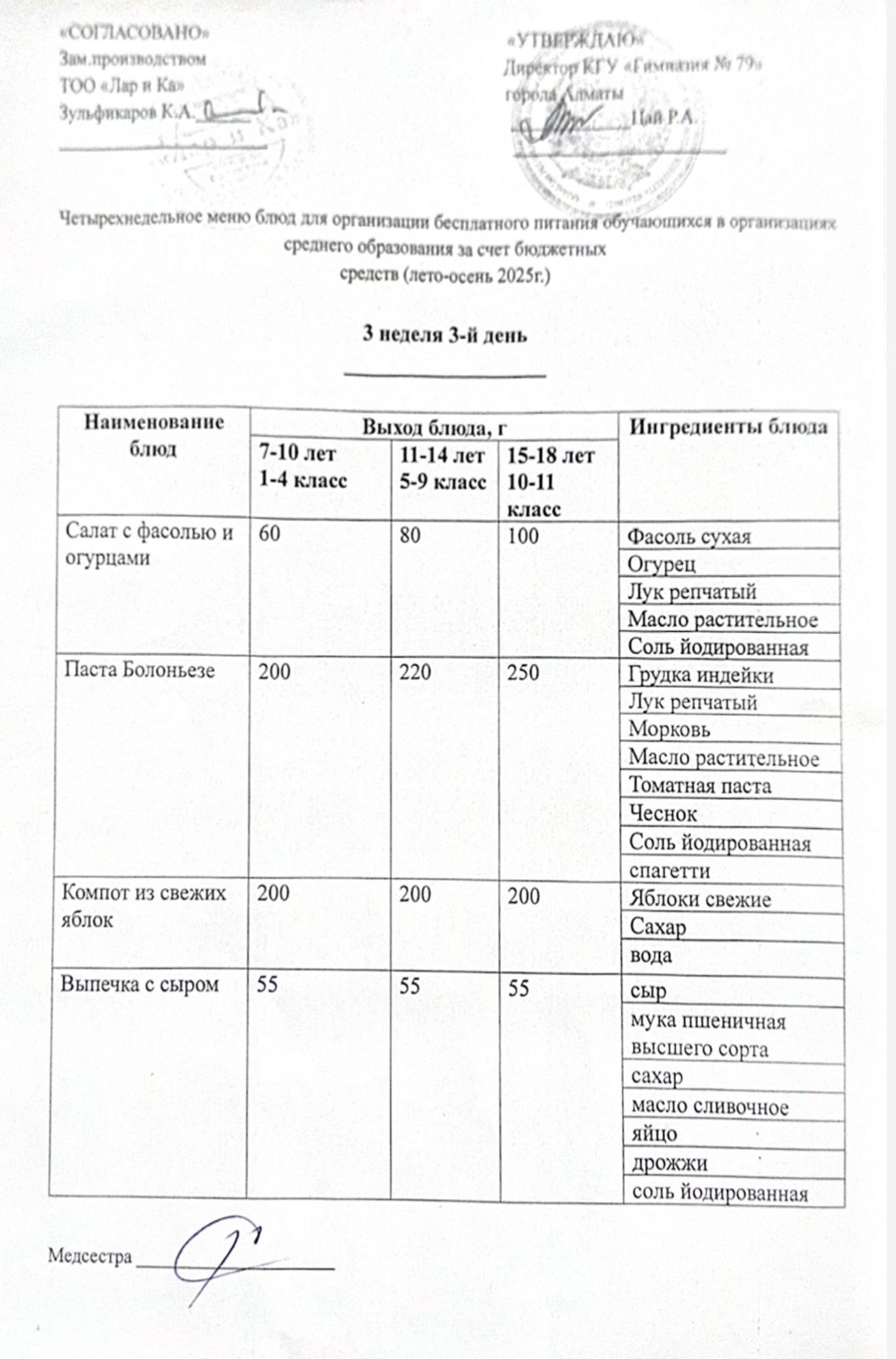 » Тегін тамақтануды ұйымдастыруға арналған тағамдар мәзірі (жаз-күз)