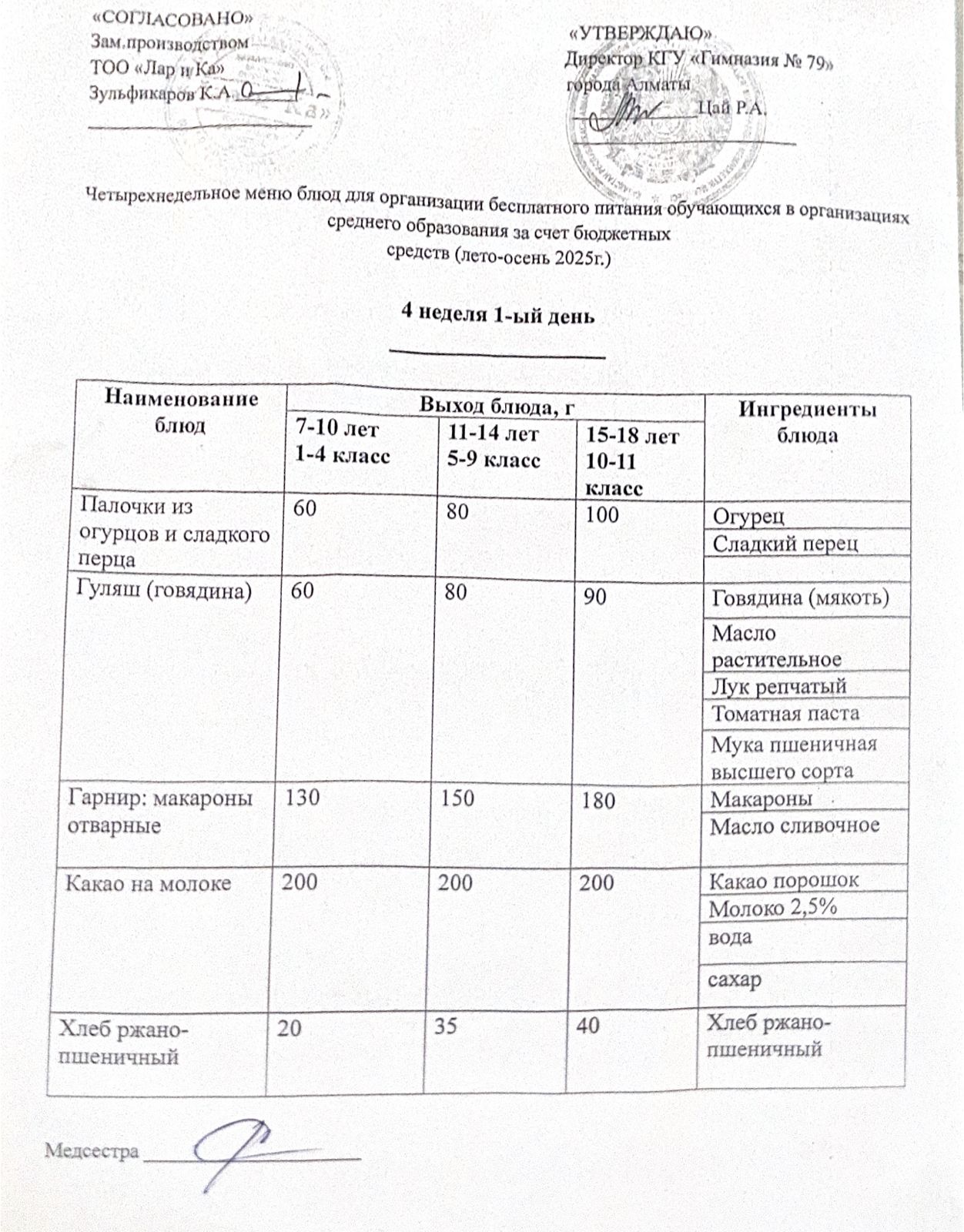 » Тегін тамақтануды ұйымдастыруға арналған тағамдар мәзірі (жаз-күз)