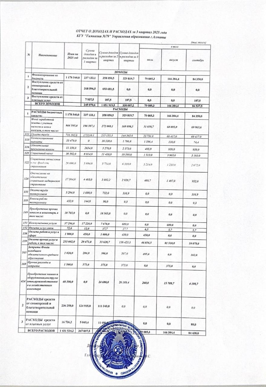 » 2025 жылғы 3-тоқсандағы кірістер мен шығыстар туралы есеп