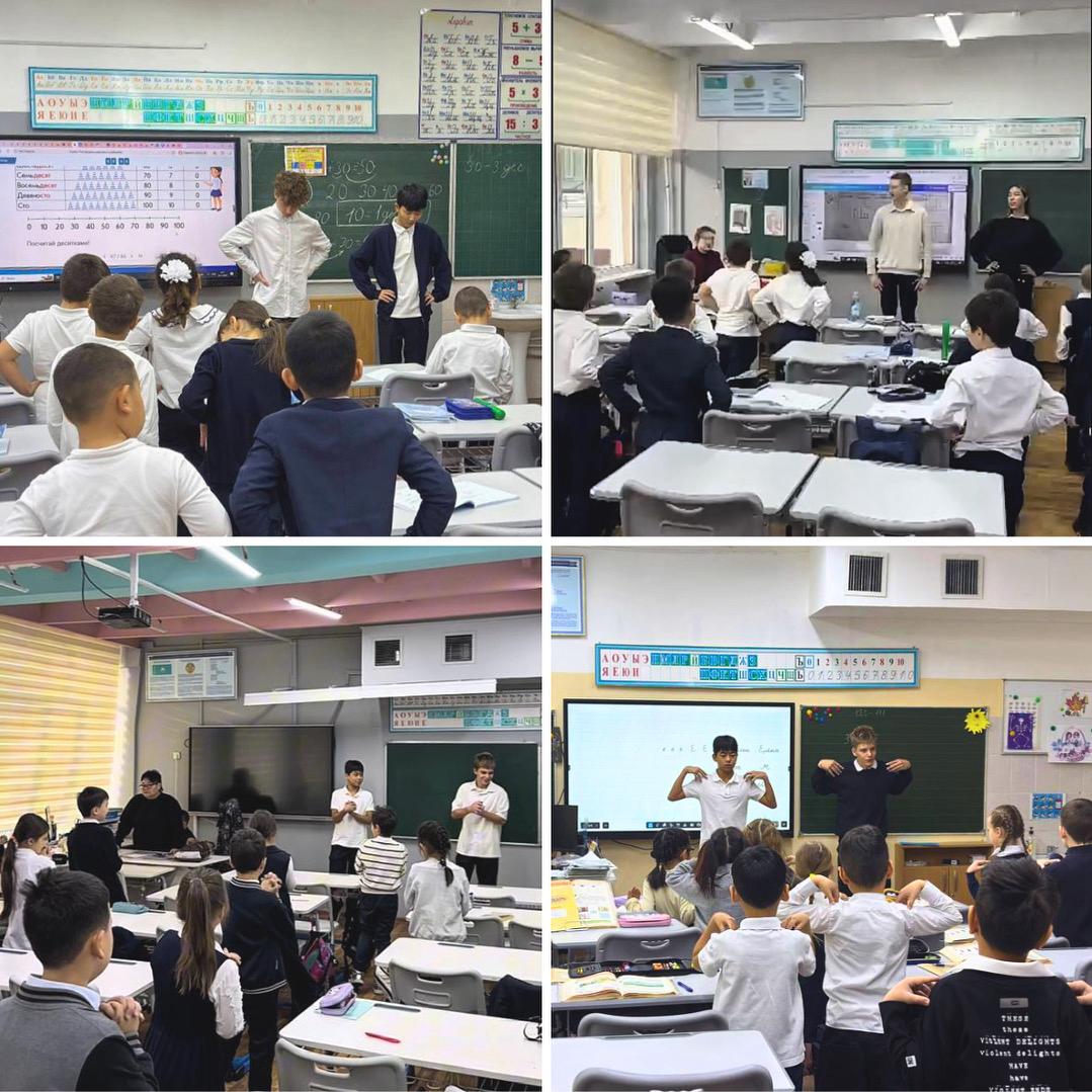 Физминутка барысында фракция мүшелері қарапайым әрі пайдалы жаттығуларды көрсетіп, бүкіл мектепке жағымды көңіл күй сыйлайды.