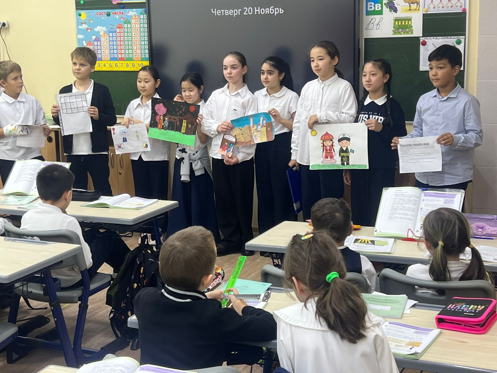Екі апта бойы біздің мұғалімдеріміз шеберліктің жоғары деңгейін көрсетті, ашық сабақтар өткізді, онда дәстүрлі әдістемелер заманауи тәсілдермен үйлесімді етіп қолданылды. Оқушылар тек оқу процесінде ғана емес, сонымен қатар шығармашылық байқауларға да белсенді қатысты: «Ғажайыптар шеберханасы» үшін қолөнер бұйымдарын жасады, каллиграфиядан («Алтын қалам») және өлең оқу сайыстарына қатысты.