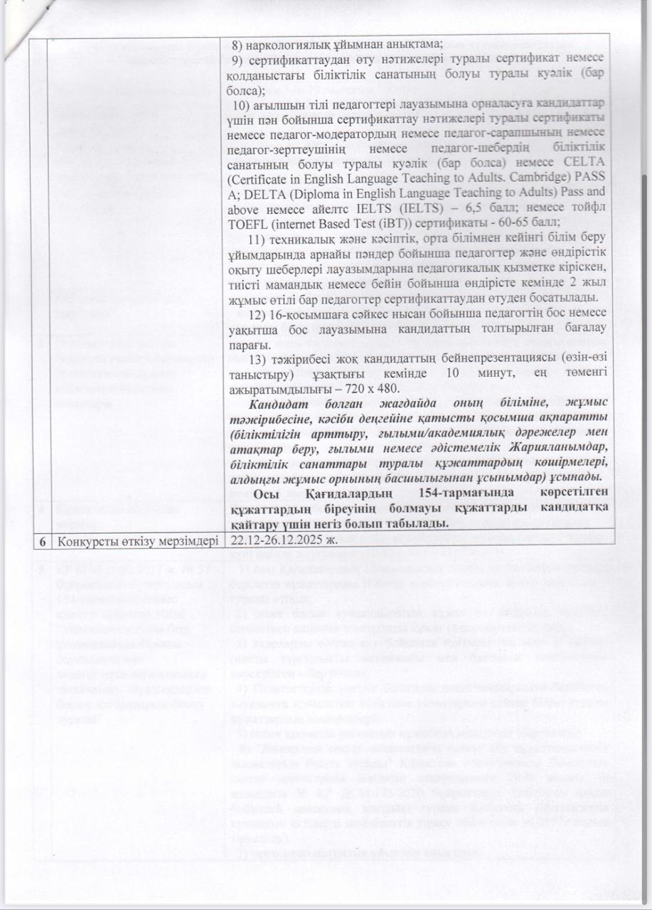 09 желтоқсан 2025 0 1 2 3 4 5 "№79 Гимназия"КММ орыс тілінде оқытатын педагогтардың бос лауазымдарына орналасуға арналған Конкурс
