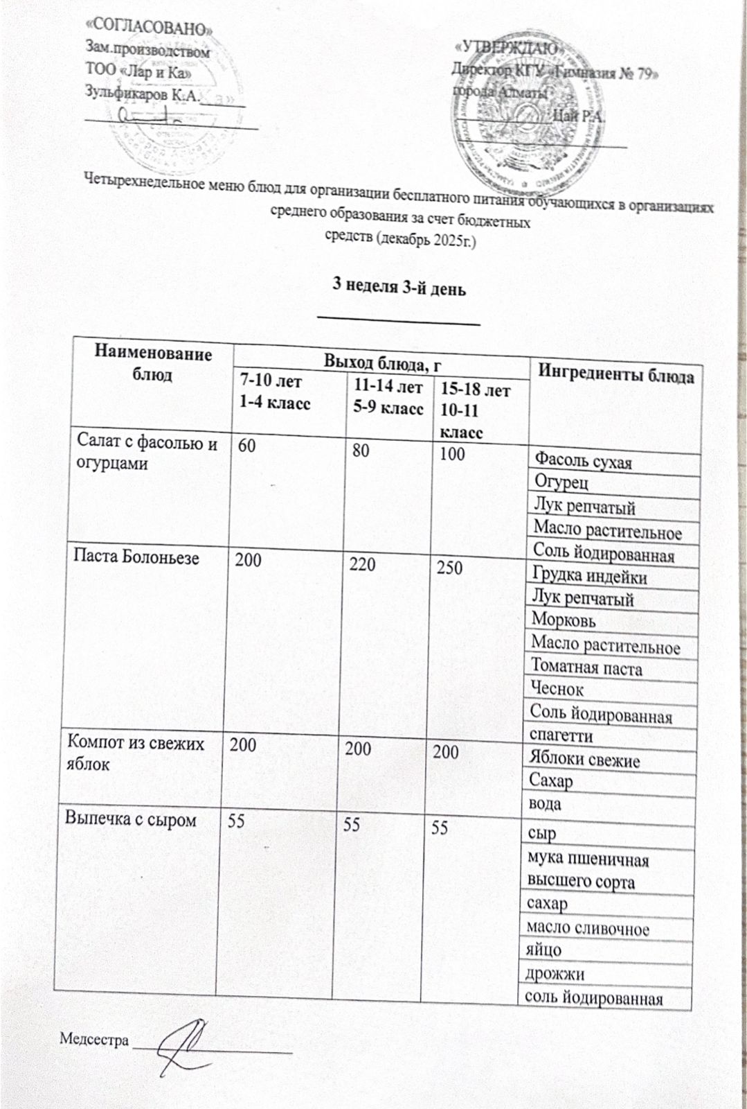 Тегін тамақтануды ұйымдастыруға арналған тағамдар мәзірі (қыс-көктем) / Меню блюд для организации бесплатного питания (зима-весна)