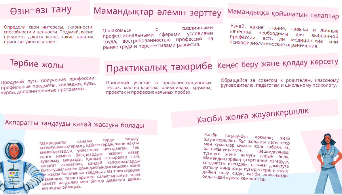 » Мамандықтар әлемінде шарлау: мектеп оқушыларына арналған жадынама