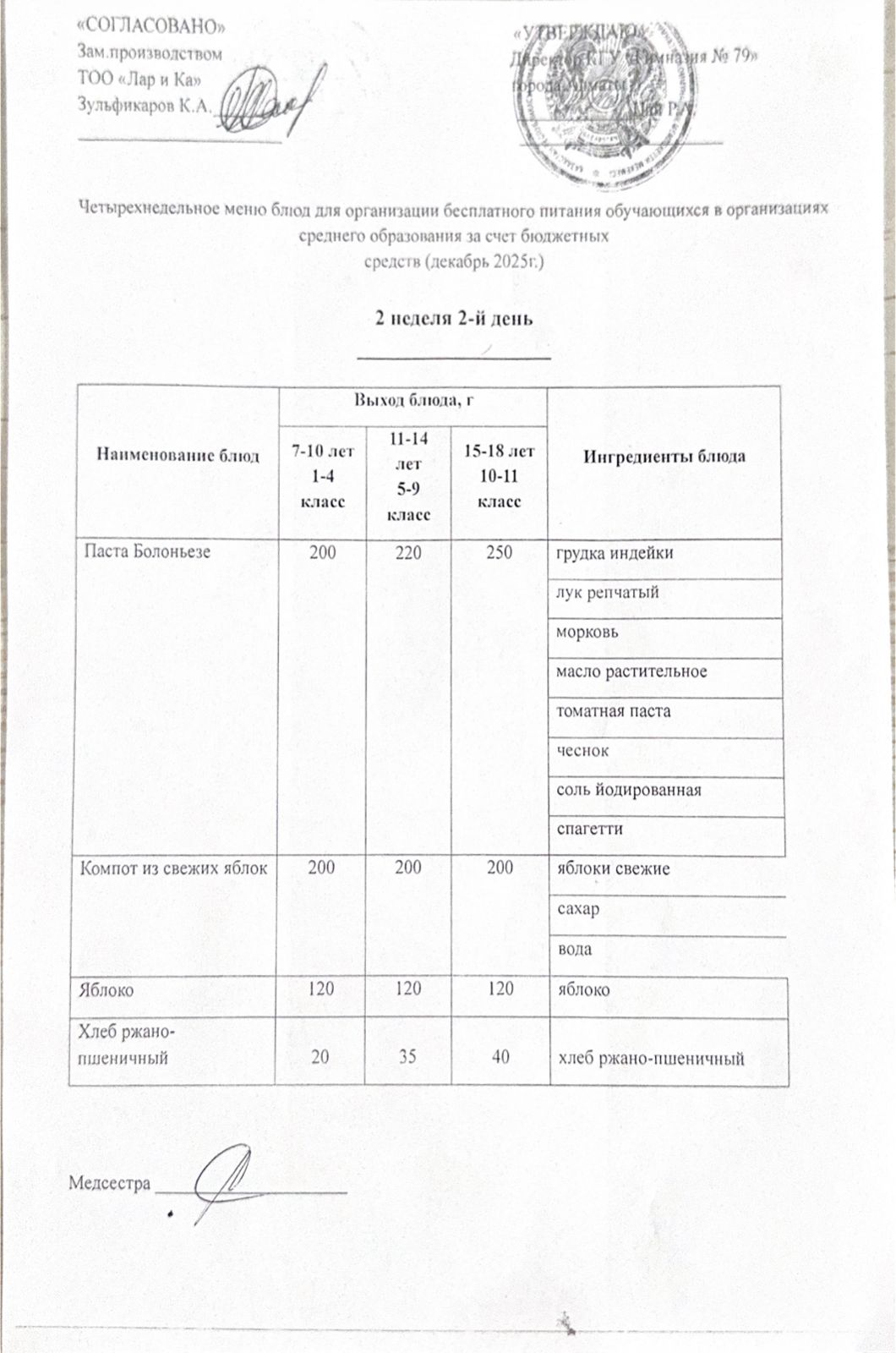 Тегін тамақтануды ұйымдастыруға арналған тағамдар мәзірі (қыс-көктем) / Меню блюд для организации бесплатного питания (зима-весна)