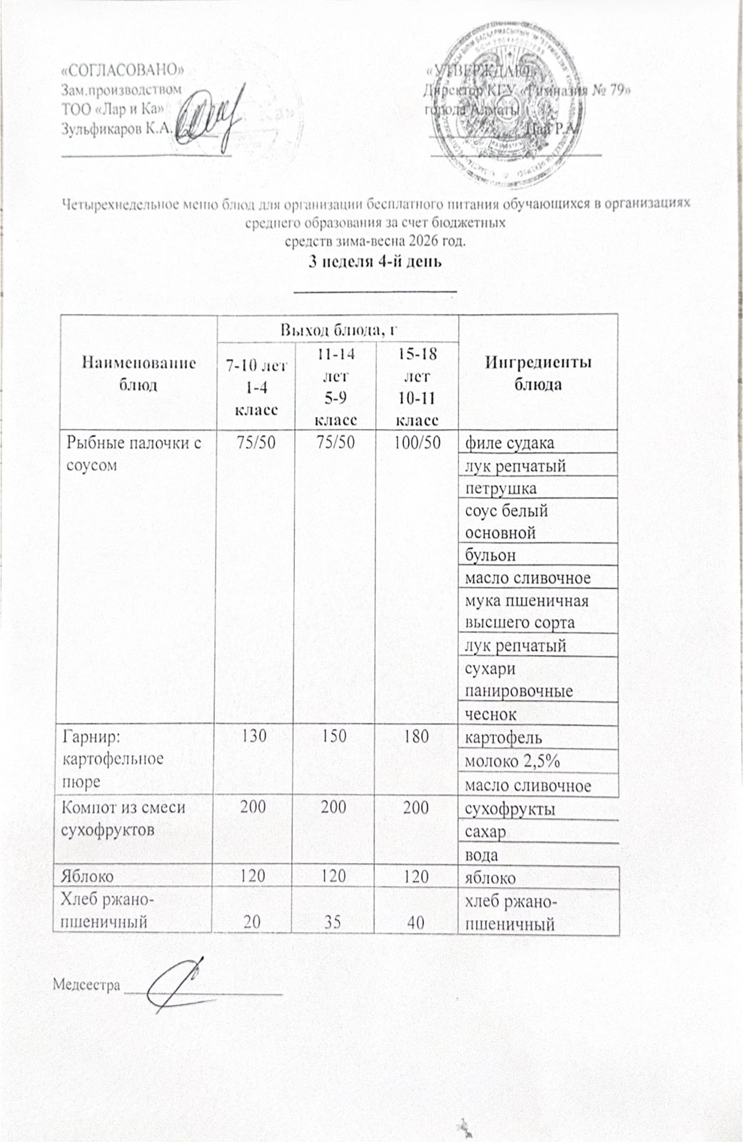 Тегін тамақтануды ұйымдастыруға арналған тағамдар мәзірі (қыс-көктем) / Меню блюд для организации бесплатного питания (зима-весна)