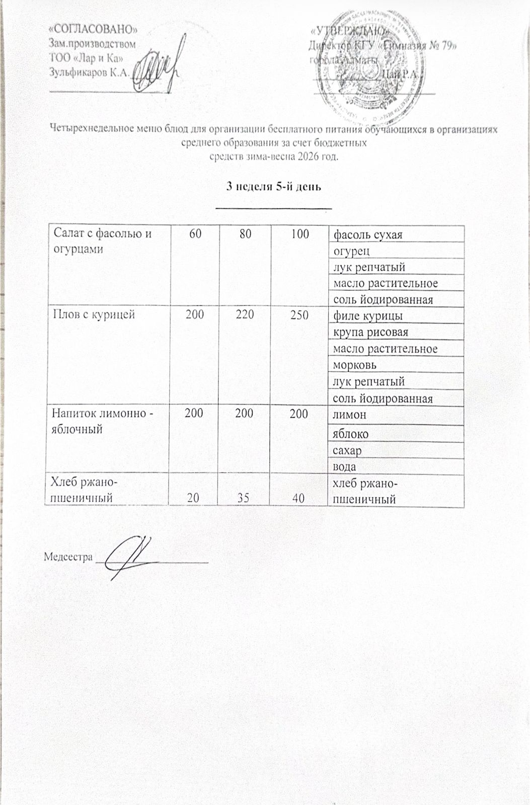 Тегін тамақтануды ұйымдастыруға арналған тағамдар мәзірі (қыс-көктем) / Меню блюд для организации бесплатного питания (зима-весна)