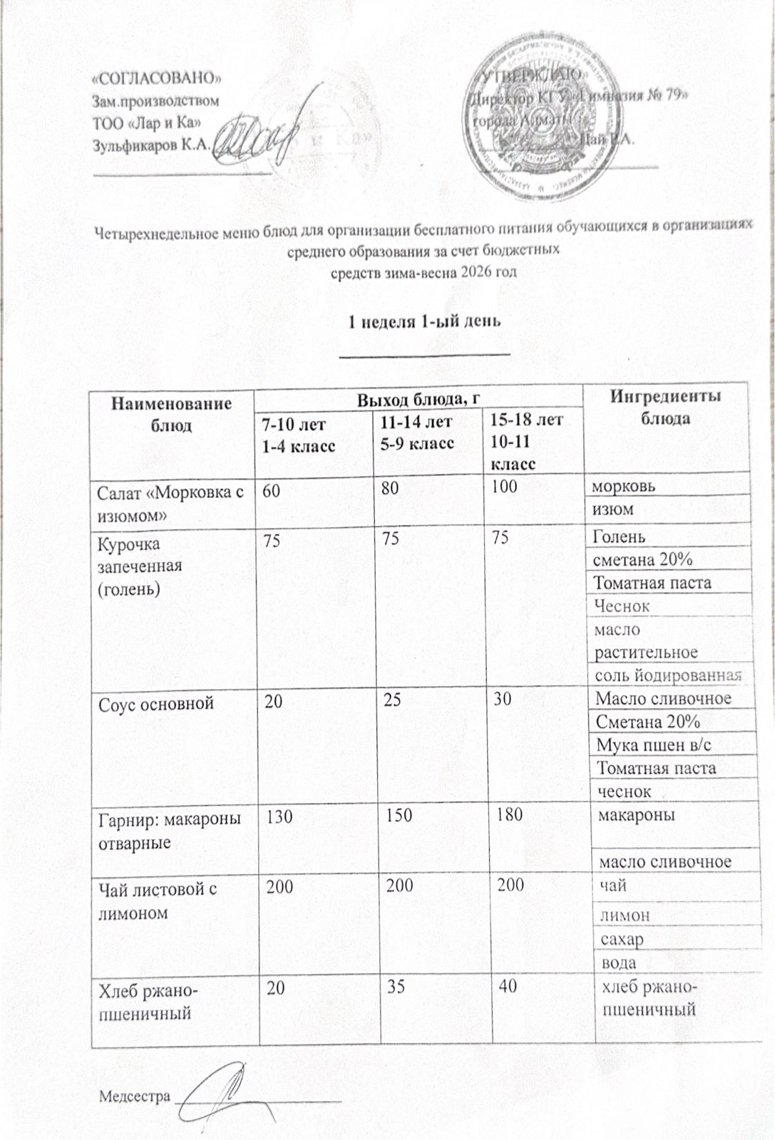 Тегін тамақтануды ұйымдастыруға арналған тағамдар мәзірі (қыс-көктем) / Меню блюд для организации бесплатного питания (зима-весна)