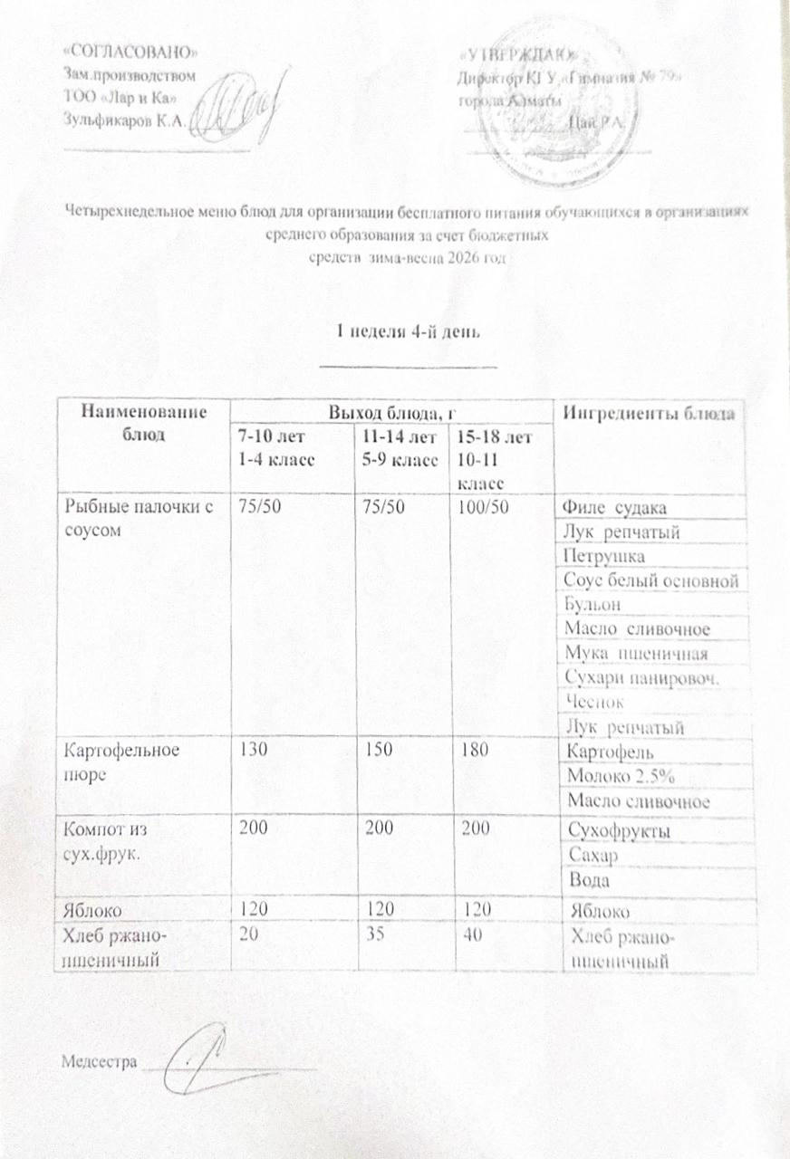 Тегін тамақтануды ұйымдастыруға арналған тағамдар мәзірі (қыс-көктем) / Меню блюд для организации бесплатного питания (зима-весна)