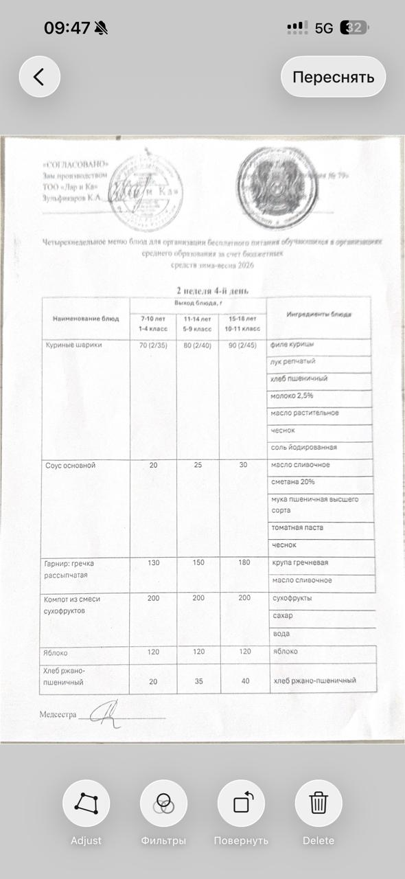 » Тегін тамақтануды ұйымдастыруға арналған тағамдар мәзірі (қыс-көктем)