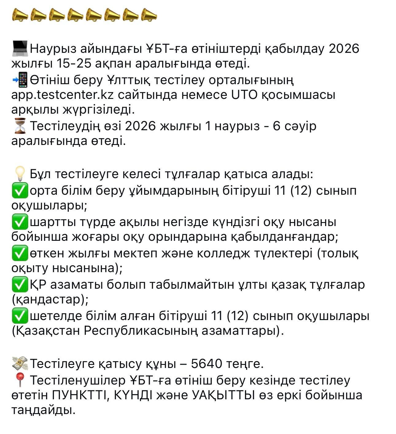 2026 жылғы ақпан айындағы ҰБТ-ға тіркелу