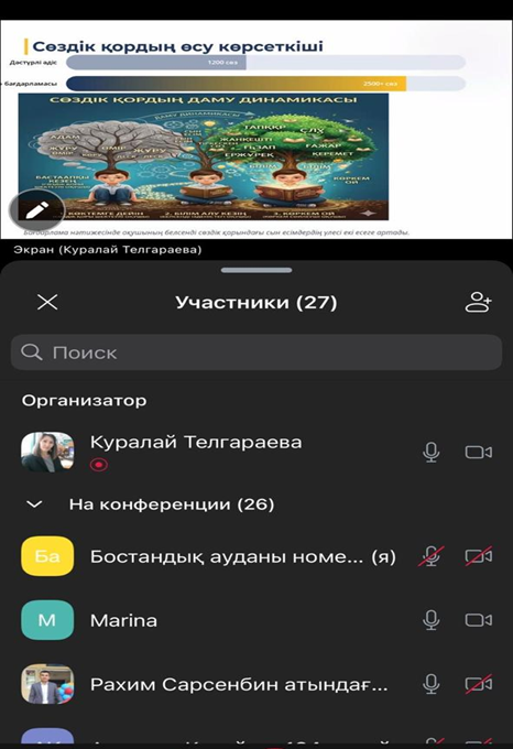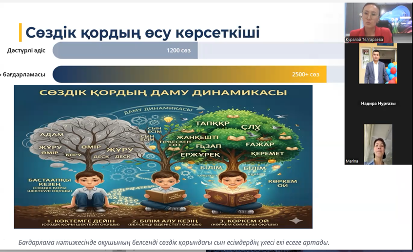 Қазақ тілі мен әдебиеті пәнінің мұғалімі Телгараева Куралай Советбековна «Көркем ой - көркем сөз (оқылым дағдысы арқылы сын есімді меңгерту)» тақырыбындағы авторлық бағдарламаны жүзеге асыру тәжірибесін ұсынды.