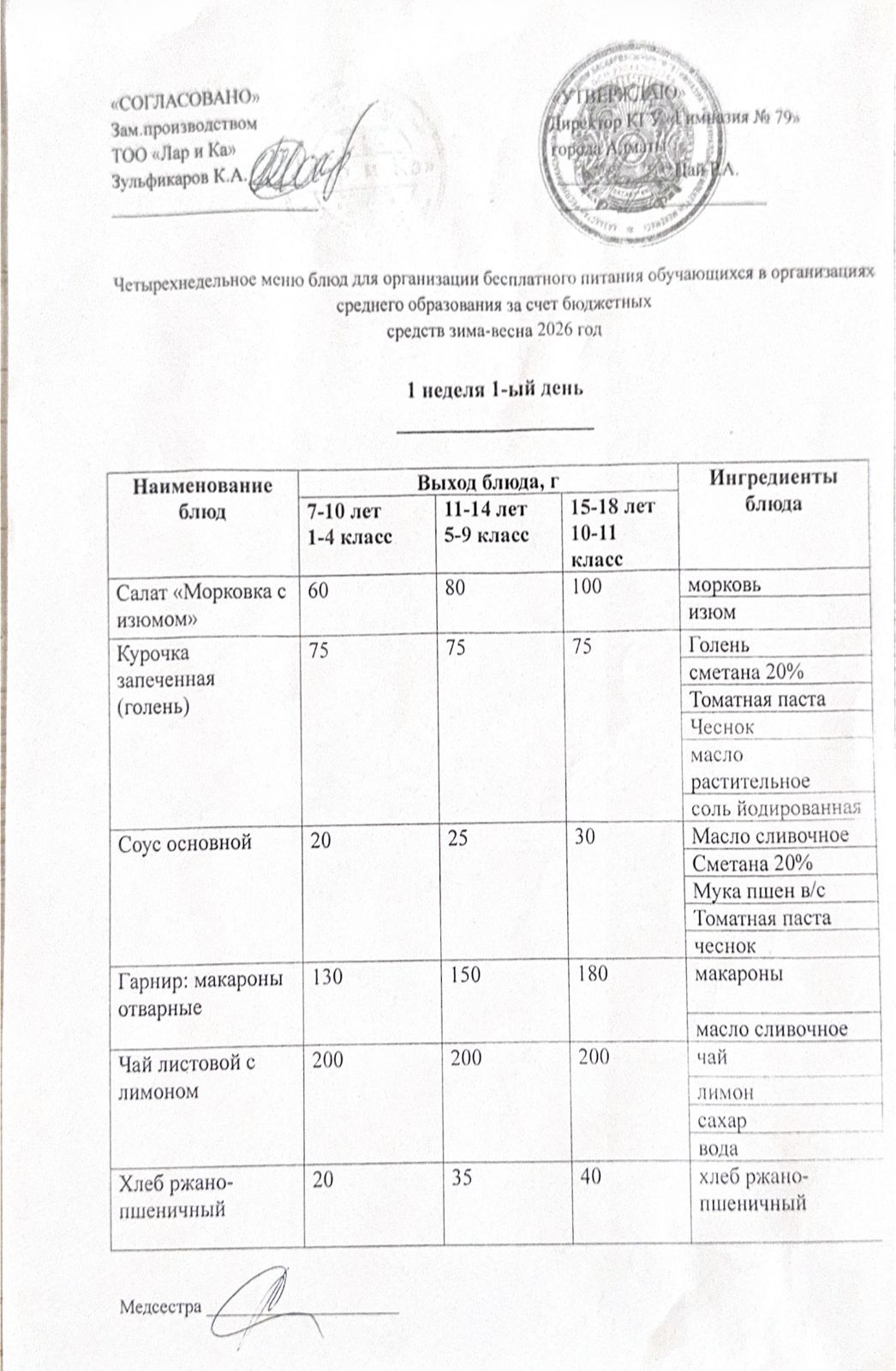 Тегін тамақтануды ұйымдастыруға арналған тағамдар мәзірі (қыс-көктем) / Меню блюд для организации бесплатного питания (зима-весна)