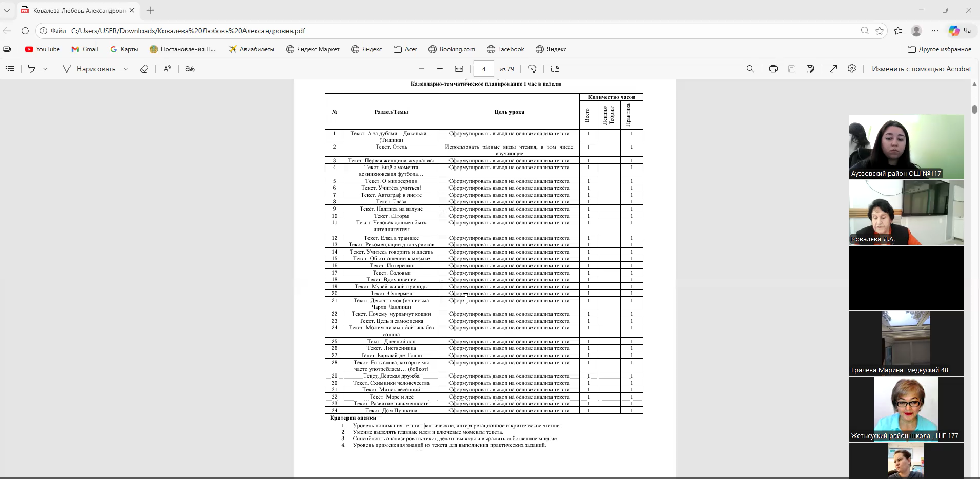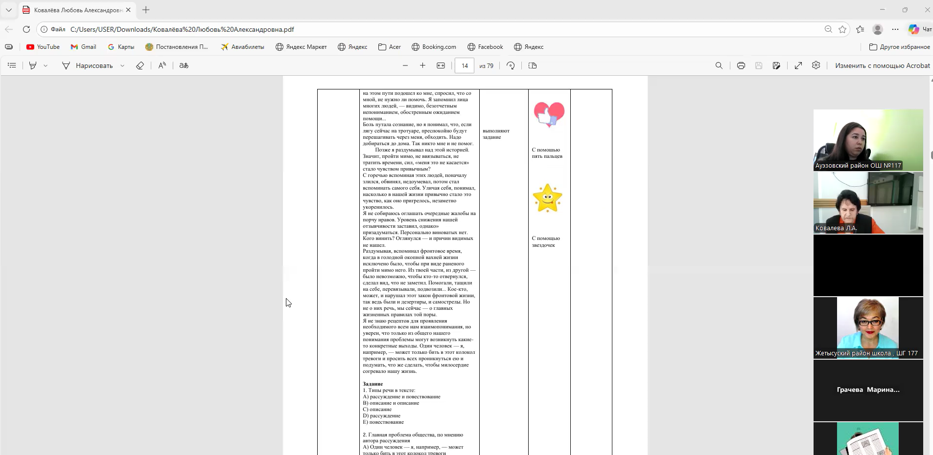 Қазіргі білім беру жағдайында бастауыш мектептің негізгі міндеттерінің бірі – оқушылардың оқырмандық сауаттылығын қалыптастыру болып табылады. Тәжірибе тарату барысында Ковалева Л.А. өз авторлық бағдарламасының өзектілігін ашып көрсетіп, оқырмандық сауаттылықты дамытуға бағытталған практикалық тапсырмалардың түрлі нұсқаларын ұсынды.